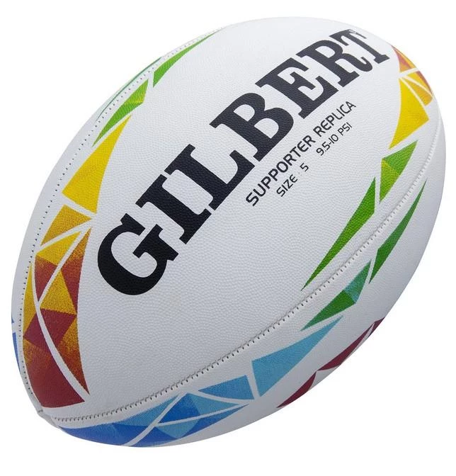 This HSBC World Sevens Series Replica Ball, designed by Gilbert, is modeled after the official match ball, making it great fan memorabilia. The vibrant, new design incorporates the energetic colors of the HSBC World Sevens Series.