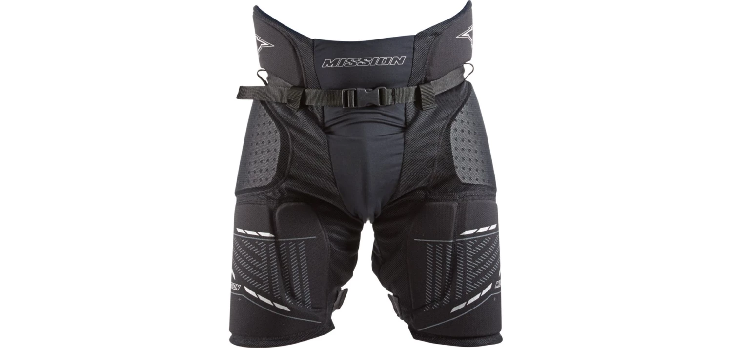 The Mission Core Roller Hockey Girdle is a relaxed-fitting girdle that is well-ventilated for optimized airflow, and segmented to help wrap around the body for a comfortable fit. Each piece of foam protecting the kidneys, hips, tailbone, and thighs are perforated to maximize air movement, while still maintaining great protection.