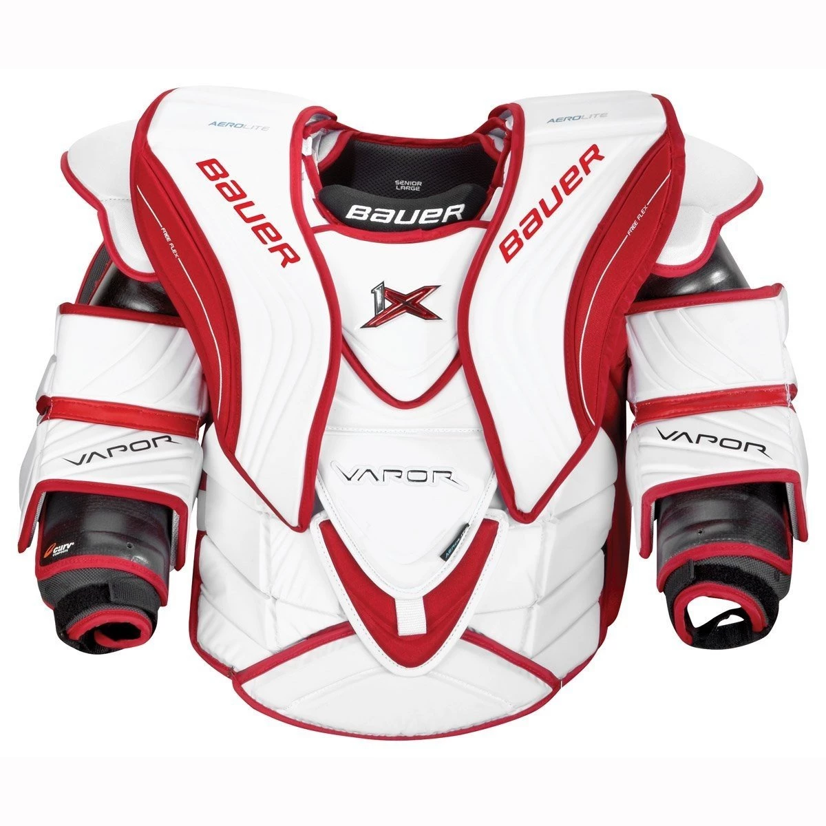 The weight of the 1X is dramatically lighter than its previous units, but it does not compromise on protection. Curv Composite is added into the biceps and forearms to create even more stability and protection. Coupled with double shoulder caps, the entire body has proper segments to increase goalie specific movements while still giving the goalie the maximum blocking surface allowed.