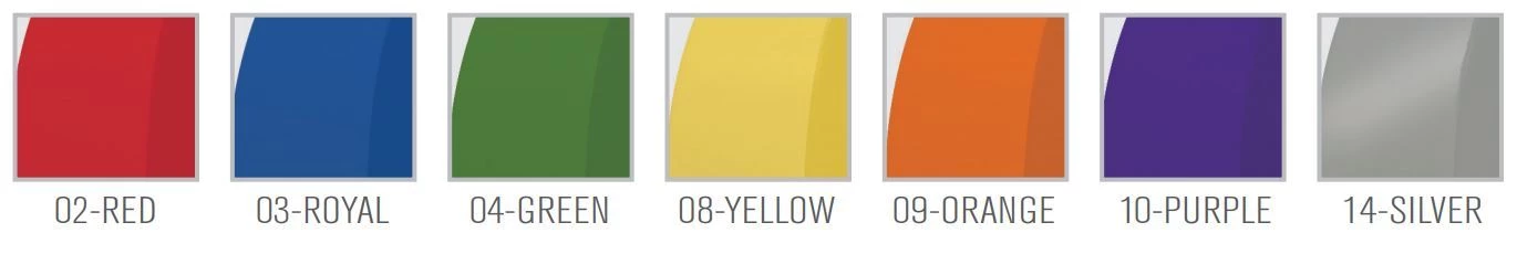 | COLOUR | -02 RED, -03 ROYAL, -04 GREEN, -08 YELLOW, -09 ORANGE, -10 PURPLE, -29 PINK |