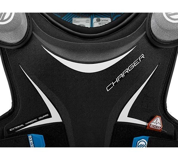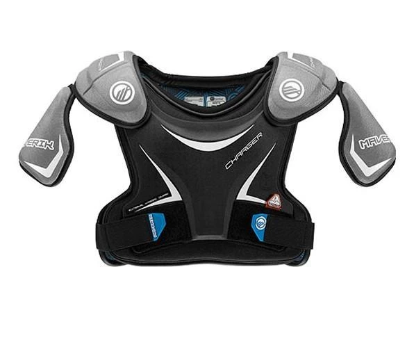 MAVERIK Charger EKG 2022 Lacrosse Shoulder Pads are designed to protect and move with young players, balancing protection, mobility, and comfort. Featuring an External Kardiac Guard (EKG) that meets new NOCSAE performance standar (ND200) to help address commotion cordis. Designed and sized specifically for youth players. Anaform foam shoulder caps for additional protection. Neck padding along with contoured shoulder and bicep panels help increase comfort. Adjustable hook and loop closure on the chest assures proper fit.