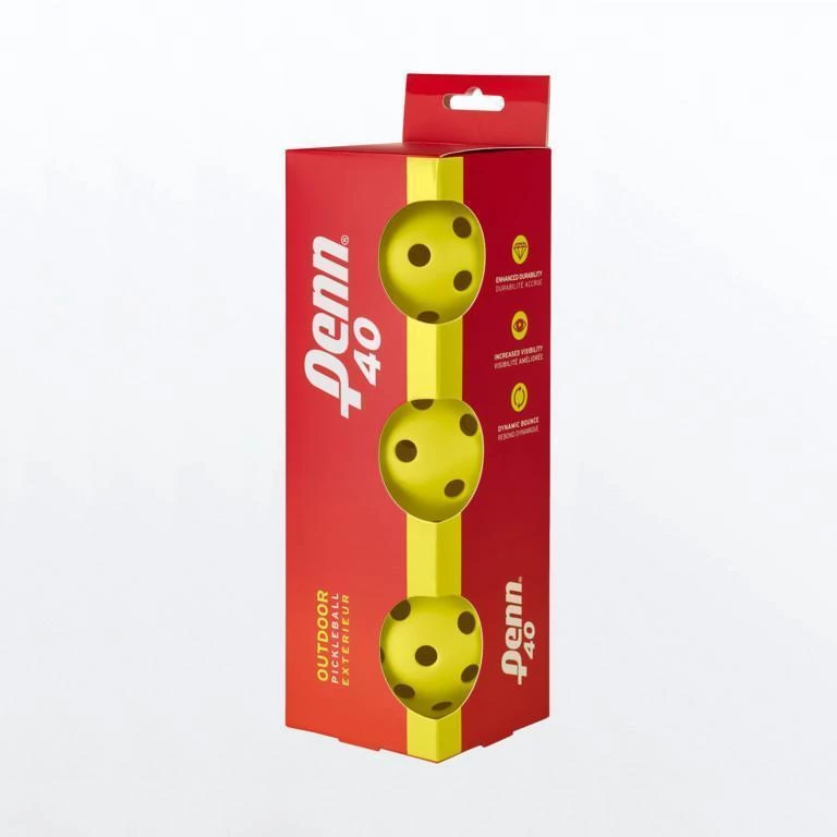 The Penn 40 outdoor ball is perfect for recreational club play, for coaches providing instruction and also for some tournament play when a softer ball is required. New to the Penn’s range of high quality performance products across multiple sports, the Penn 40, which is USAPA approved, offers enhanced durability for all levels of pickleball play and also features increased visibility for all lighting conditions. The Penn 40 outdoor ball also features a dynamic bounce for ultimate performance and playability each time you step on court.