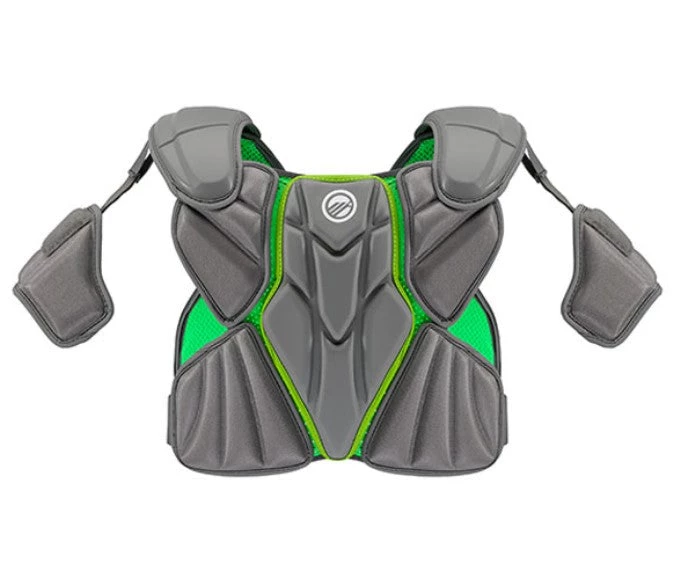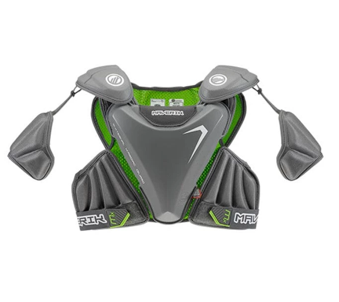 MAVERIK MX EKG 2022 Lacrosse Shoulder Pad is engineered utilizing the same principles of fit and protection that have made Maverik pads the preference of elite athletes across the sport of Lacrosse. Featuring an External Kardiac Guard (EKG) that meets new NOCSAE performance standard (ND200) to help address commotio cordis. Traditional fit has been designed with anatomical articulation to provide comfort and mobility. Removable bicep pads for custom protection. ANAFORM chest and spine plates are designed to manage high velocity impacts. DuraStretch panels across the torso allow pads to move with the body.